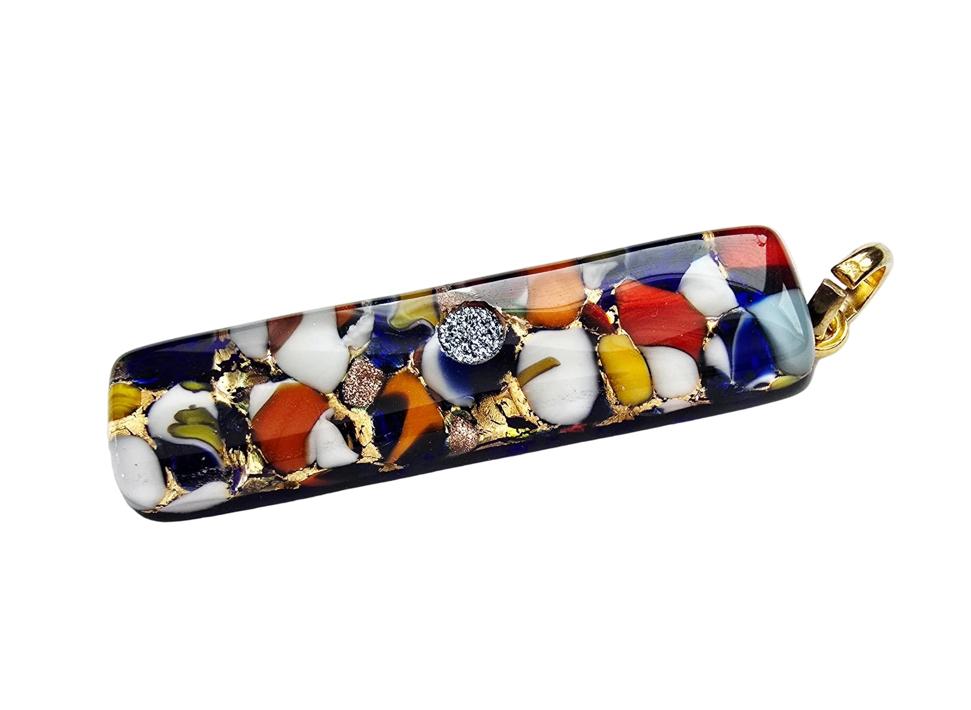 Der Anhänger „Bunte Seele“ aus feinem Murano Glas steht für Lebensfreude, Offenheit und kreative Vielfalt. Seine schmale, längliche Form trägt ein lebendiges Farbspiel, bei dem leuchtende Töne frei ineinanderfließen – so facettenreich und ausdrucksstark wie die Seele eines Menschen, der Farbe im Leben liebt.