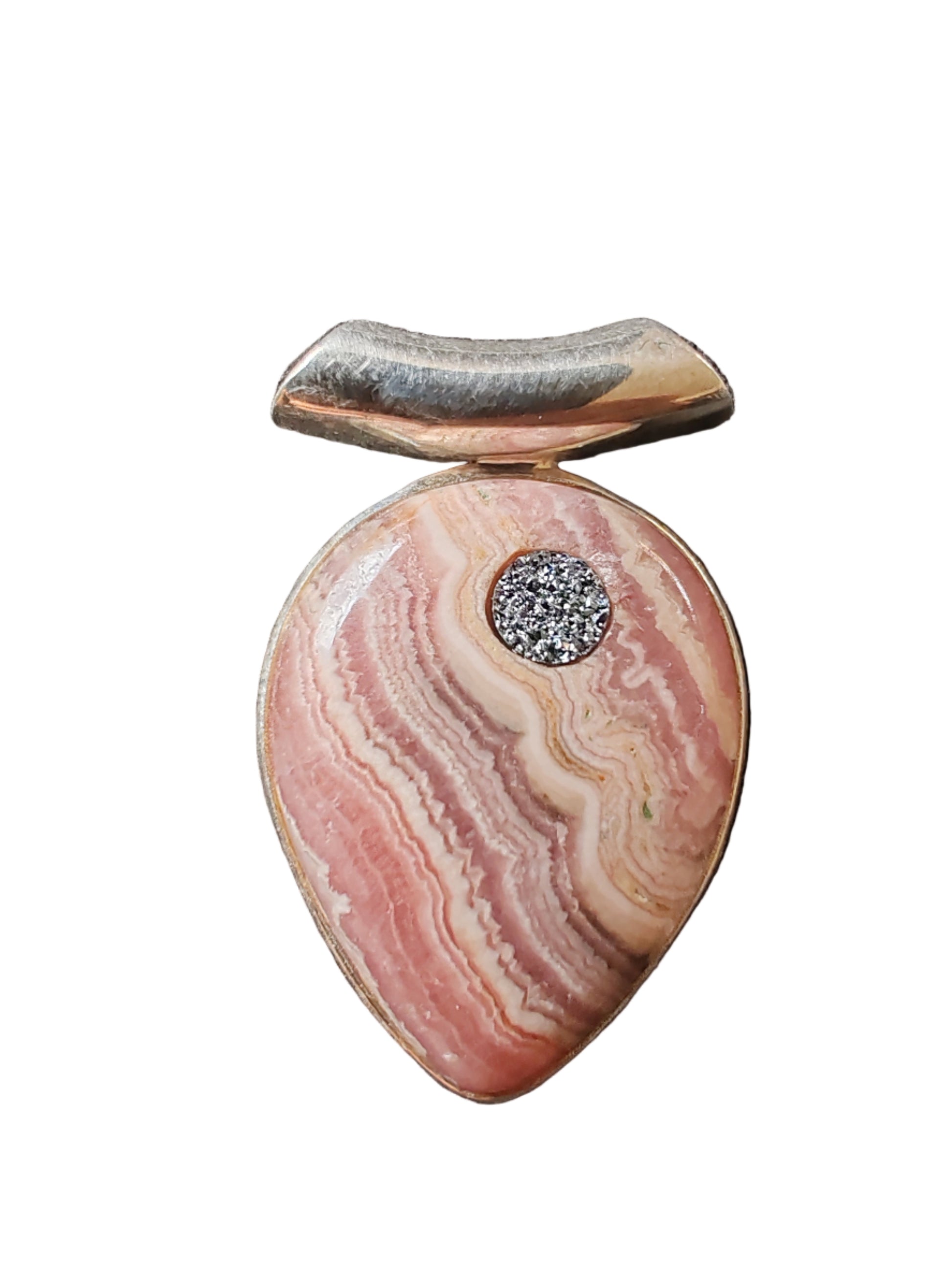 „Pink Dream“ vereint die Zartheit des Rhodochrosits mit der strahlenden Modernität von Sterling Silber. Die sanften Rosa-Bänderungen des Edelsteins wirken wie gemalte Wolken, während das eingelassene Osmium-Inlay wie ein funkelnder Stern inmitten eines rosigen Himmels erstrahlt. Dieses Schmuckstück symbolisiert Liebe, Harmonie und die Magie einzigartiger Augenblicke. Ein luxuriöses Statement für alle, die Eleganz mit süßer Romantik verbinden möchten. „Pink Dream“ ist nicht nur ein Schmuckstück – es ist ein poetisches Versprechen voller Leichtigkeit und Glanz.