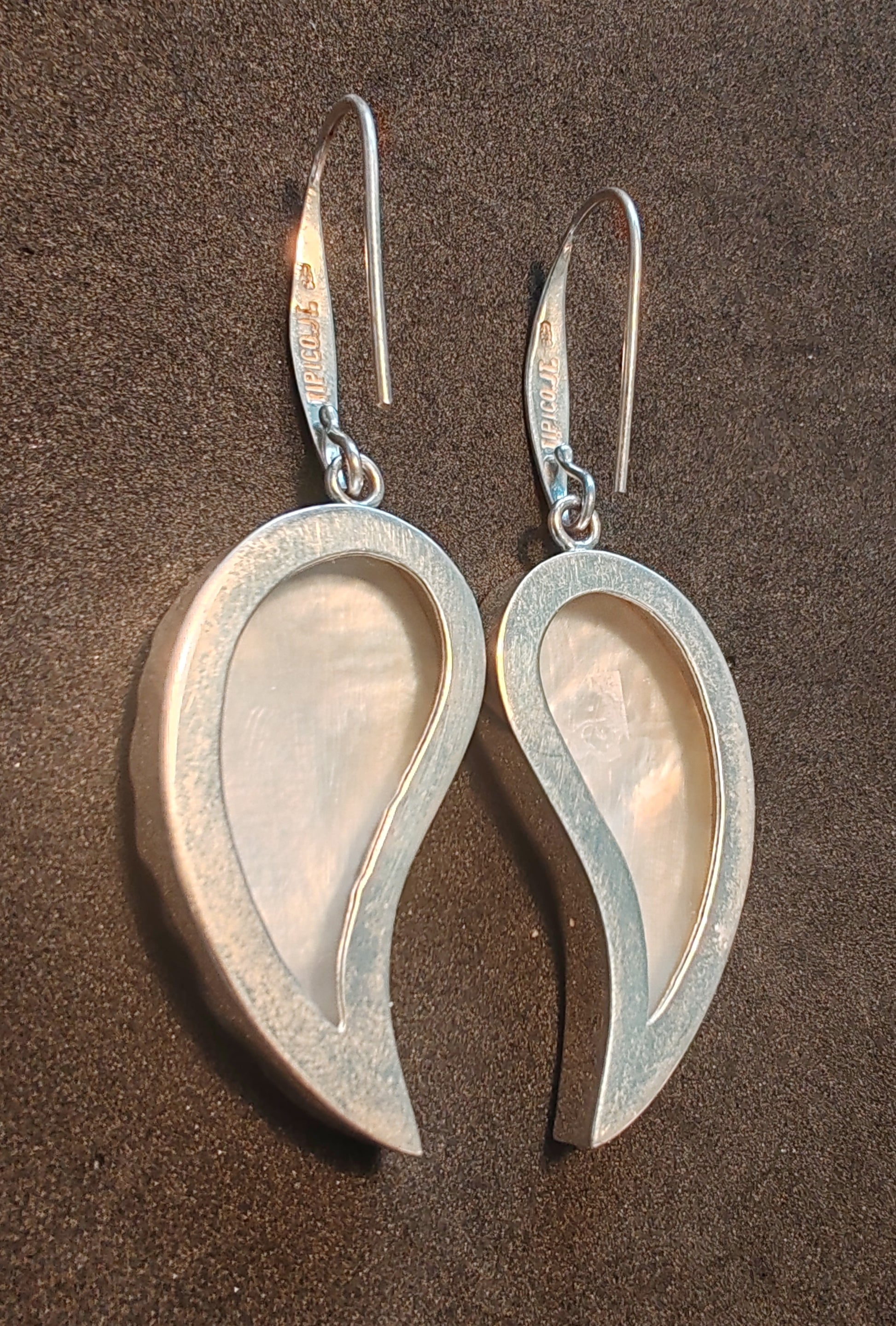 Ein Hauch von Ewigkeit, eingefangen in einem Schmuckstück: Die Guardian Wings Ohrhänger vereinen schimmerndes Perlmutt, kunstvoll gefasst in Sterlingsilber, mit einem strahlenden Akzent aus kristallinem Osmium – dem seltensten Edelmetall der Welt.